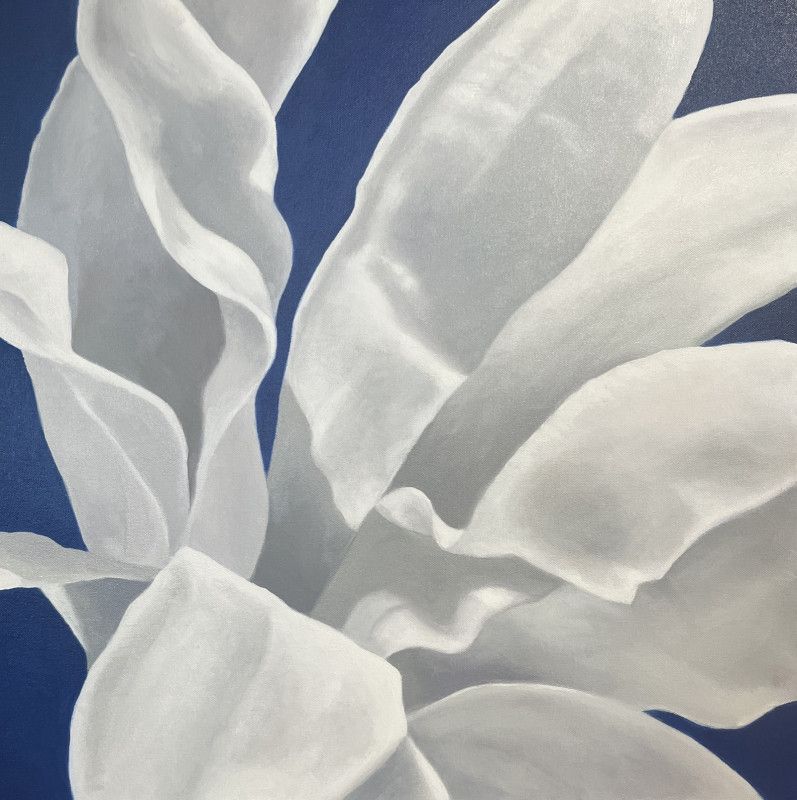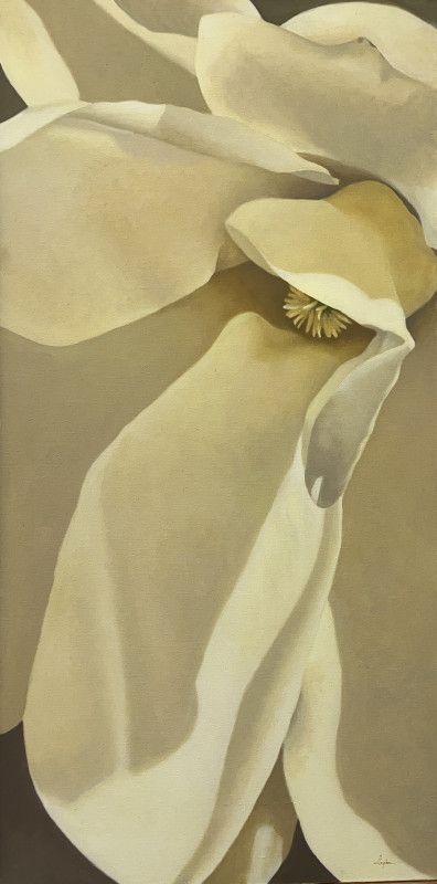 as I can remember, 5? 6? sitting down to draw the neighbor’s china cabinet, full of cups and glasses. What is this wish to put something on paper or canvas? And does it even matter? It just continues. And it evolves, changing all the time, moving in cycles. Moving from realistic detail to open unbounded space and back again. But always it is about light, how light touches onion skin, or how it catches the bend of a magnolia petal, or catches the tip of the foam of a wave, or radiates from some distant space that might actually be an inner space. Whatever words I try to find to describe my paintings, the paintings speak best for themselves.