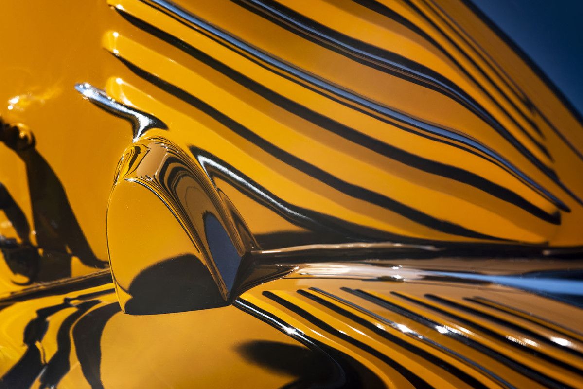 “Form and function welded, bolted, and stitched together for speed, comfort, performance, and safety. My photographs of cars illustrate the exquisite precision of bent metal and chrome to conform to a designer's vision for the efficiencies of aerodynamics combined with the beauty of timeless style. I use the camera to highlight and celebrate the industrial precision of design in its abstraction and the transformation cars undergo in different light and environmental atmospheric conditions.” SE