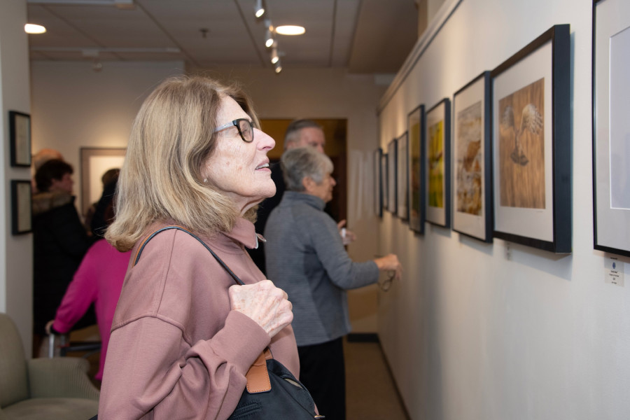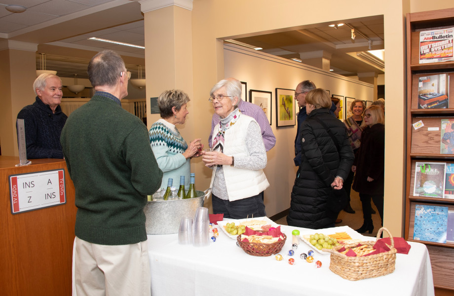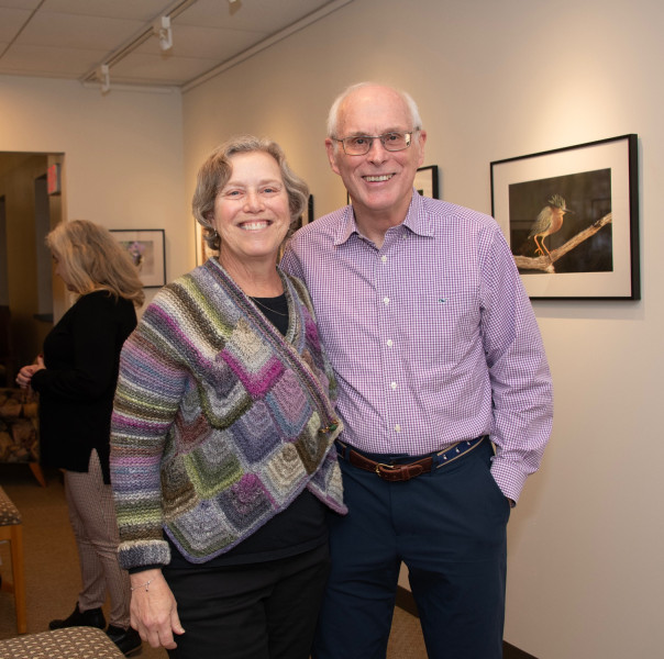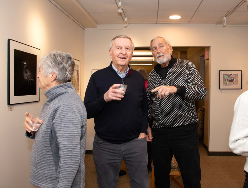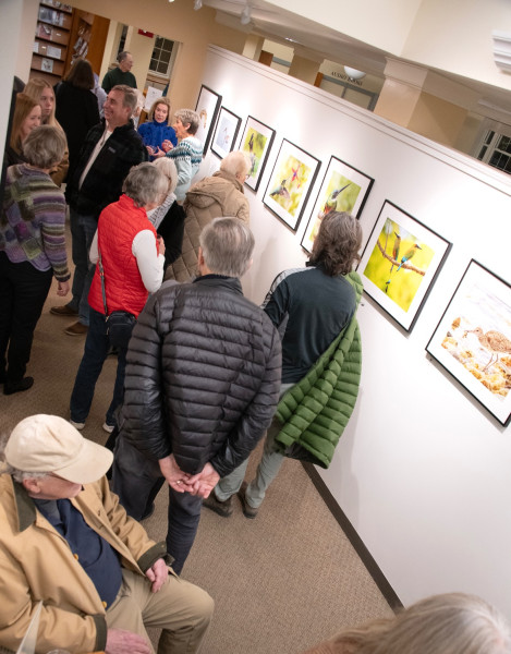 The Helen Bumpus Gallery at the Duxbury Free Library hosted a reception on Friday for its latest exhibit, “Things that Fly,” featuring then photographs of local nature and bird photographers, Terri Nickerson and Stephen Schroeder. The show runs through February. (photos by Karen Wong)