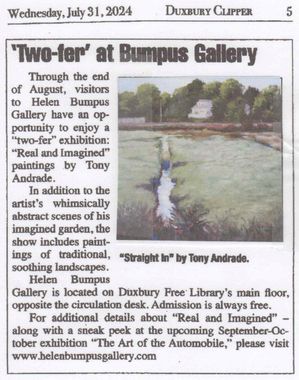Through the end of August, visitors to Helen Bumpus Gallery have an opportunity to enjoy a “two-fer” exhibition: “Real and Imagined: paintings by Tony Andrade.